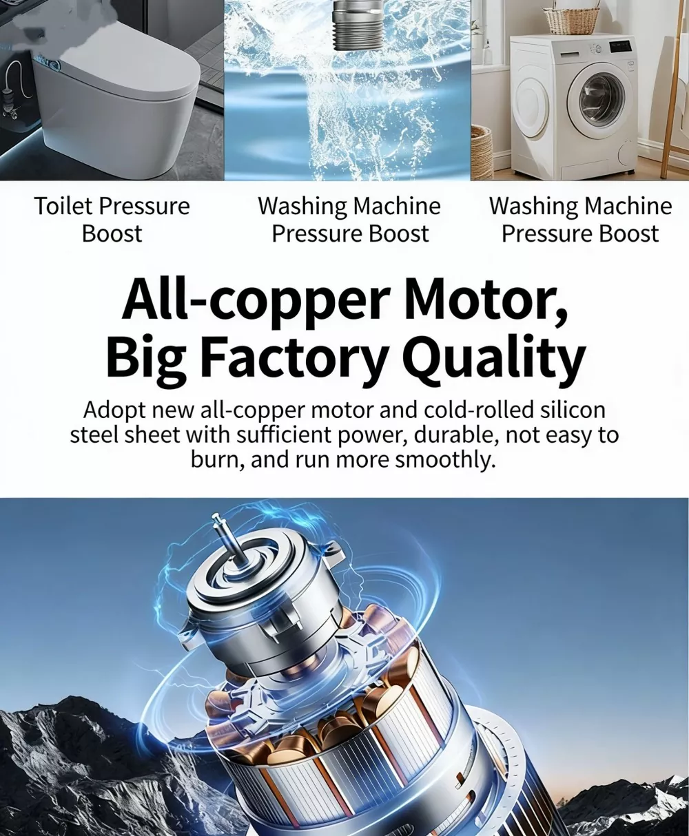 Augmentation intelligente de la pression des toilettes : assure une pression d'eau de chasse stable pour un nettoyage en profondeur, évitant ainsi une chasse d'eau incomplète et les odeurs résiduelles causées par une pression d'eau insuffisante.