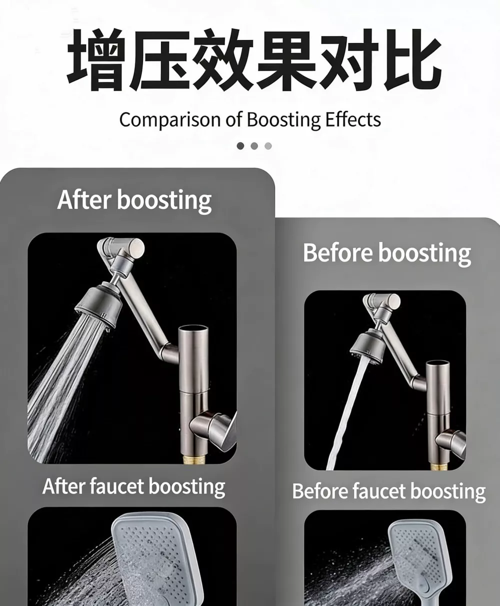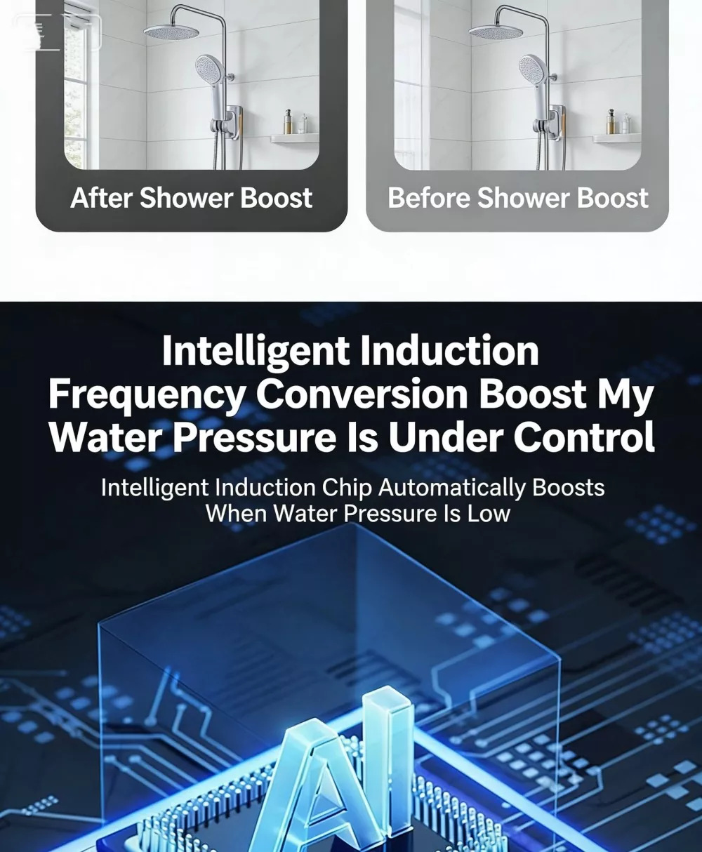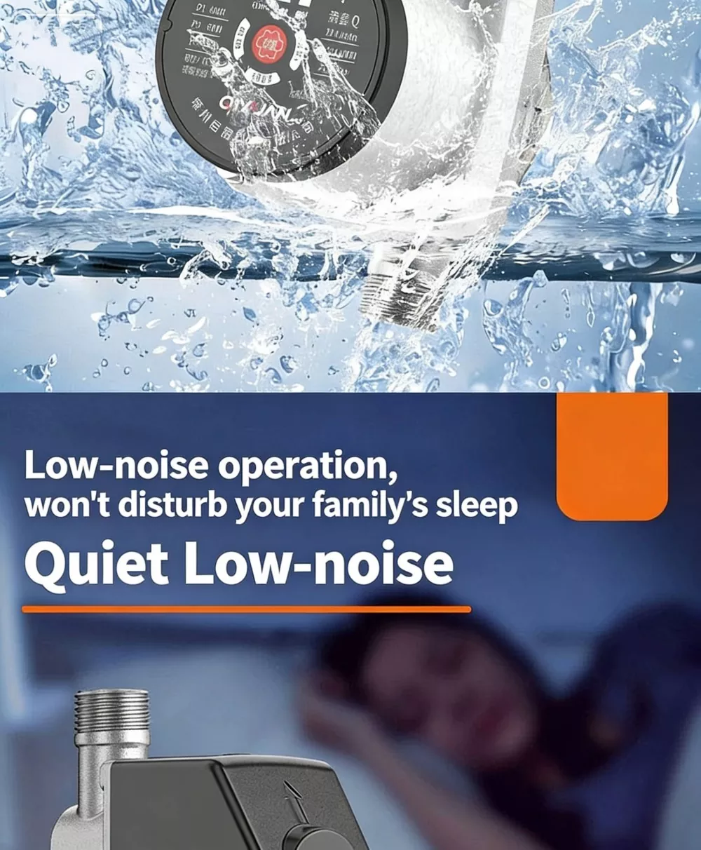 Augmentation de la pression du pommeau de douche : améliore la force de sortie de l'eau de la douche, résout les problèmes de faible débit d'eau et de température de l'eau fluctuante, optimisant considérablement l'expérience de la douche.