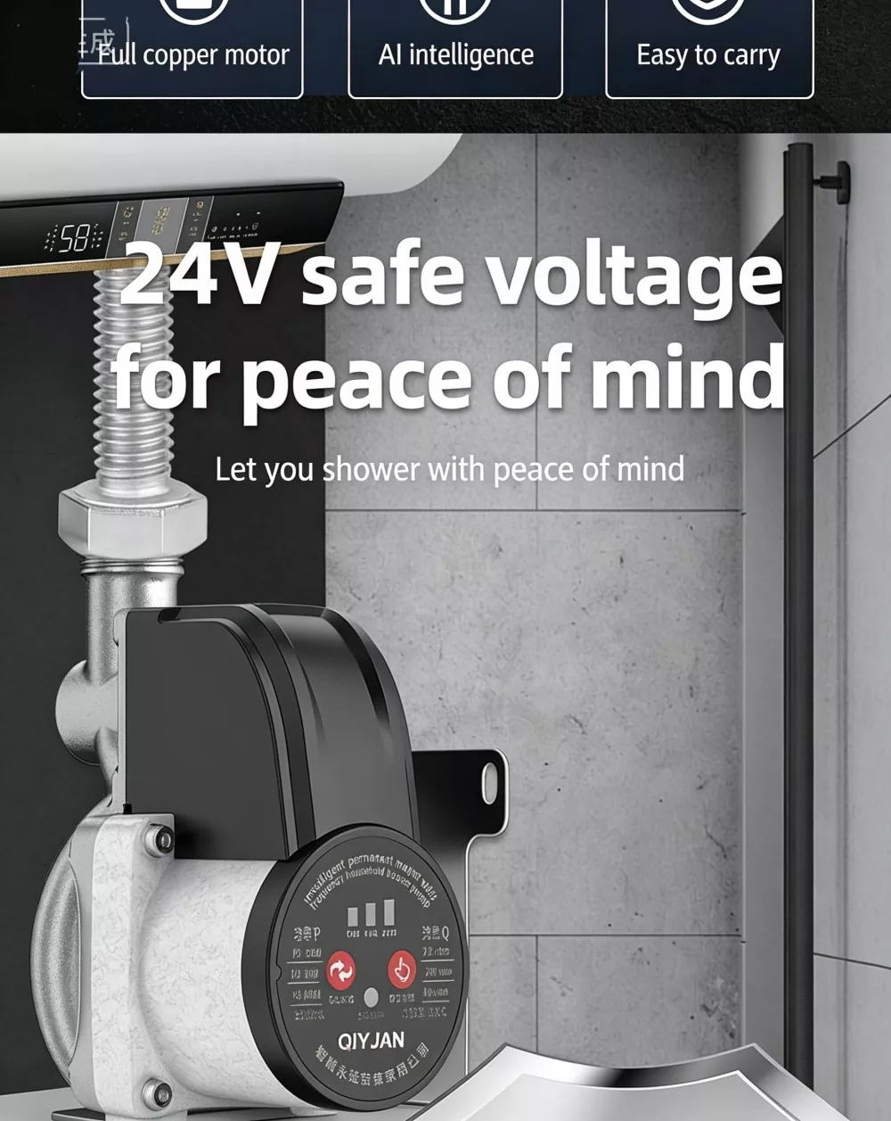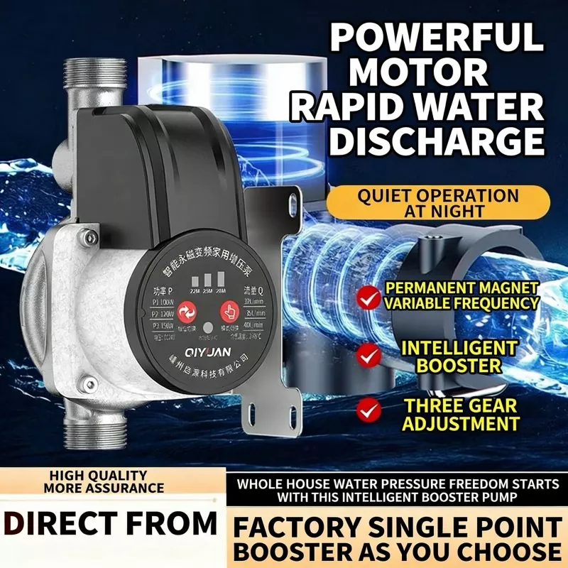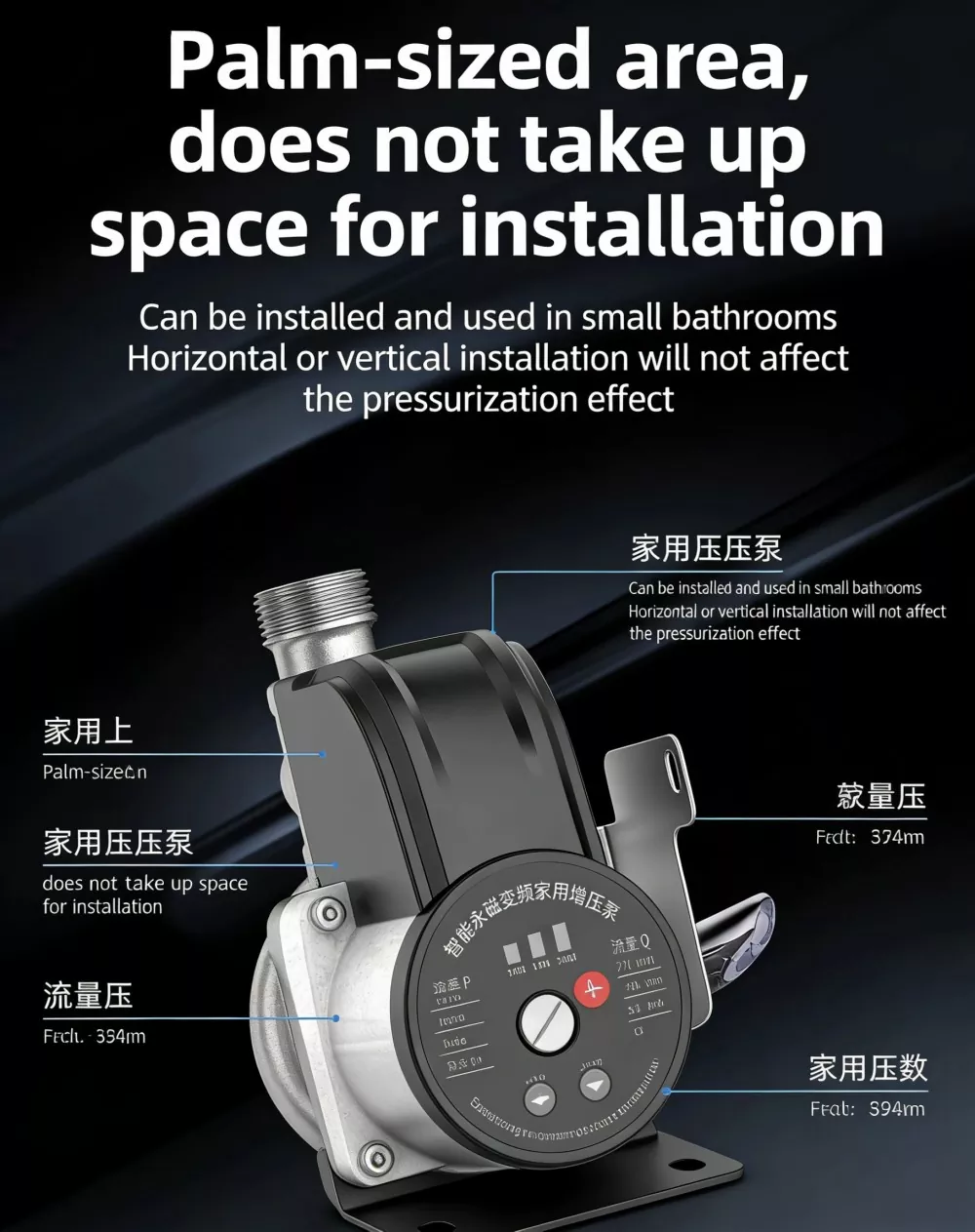 En résumé, la petite pompe de surpression intelligente intègre un contrôle intelligent, une efficacité énergétique élevée, un fonctionnement ultra-silencieux, une sécurité fiable et une installation facile, ce qui en fait le choix optimal et rentable pour les ménages souhaitant résoudre les problèmes de faible pression d'eau et améliorer leur expérience quotidienne de l'eau.