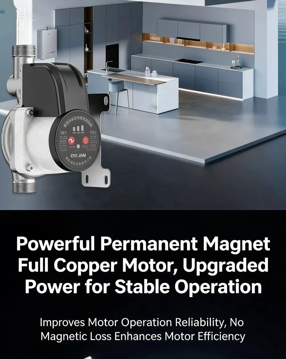 Équipée d'un moteur à aimant permanent sans balais et de roulements de précision, la pompe fonctionne avec un bruit extrêmement faible, ne perturbant pas la vie quotidienne, même lorsqu'elle est installée à l'intérieur. Le moteur comporte des enroulements entièrement en cuivre pour une excellente dissipation thermique et une longue durée de vie.