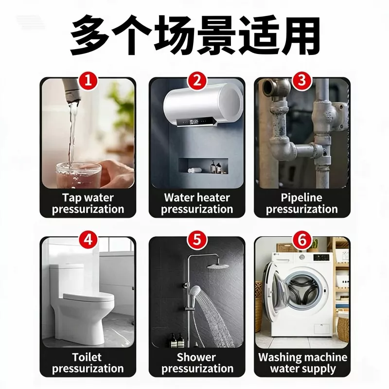 Cette petite pompe de surpression intelligente est largement adaptable à des scénarios diversifiés de demande en eau domestique, correspondant avec précision aux besoins de renforcement des différents équipements d'eau, et ses principaux scénarios d'application comprennent :
